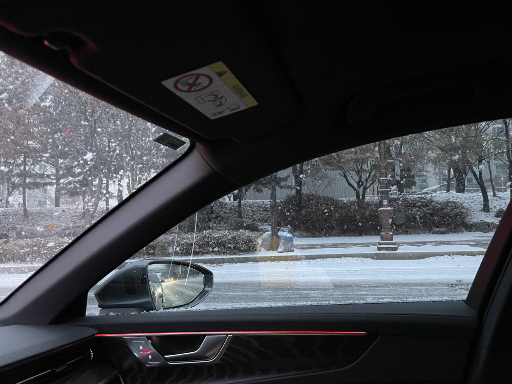 하지만, 마지막 눈길 주행을 경험하고 싶어 차를 몰로 출근을 시작한다.