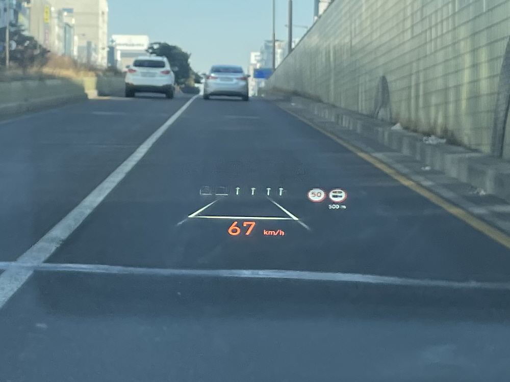 넷째, 내비게이션과 연동되는 자세한 HUD 정보가 운전에 도움을 주었다.