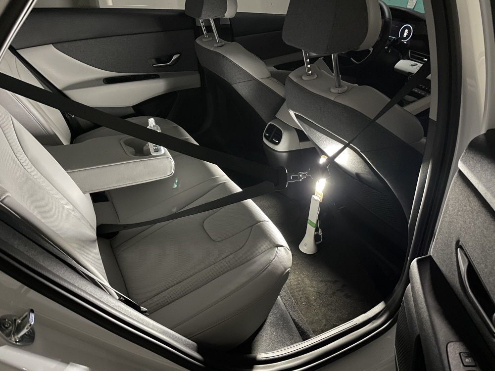 2열은 안전벨트가 시트에 붙어 있어 작업하기가 곤란한데, 나름 머리를 굴려 1열과 2열의 벨트를 연결해 작업 공간 확보와 작업 후 코팅제가 벨트에 이염되는 것을 방지해 보았다. 나름 괜찮았던 거 같다.