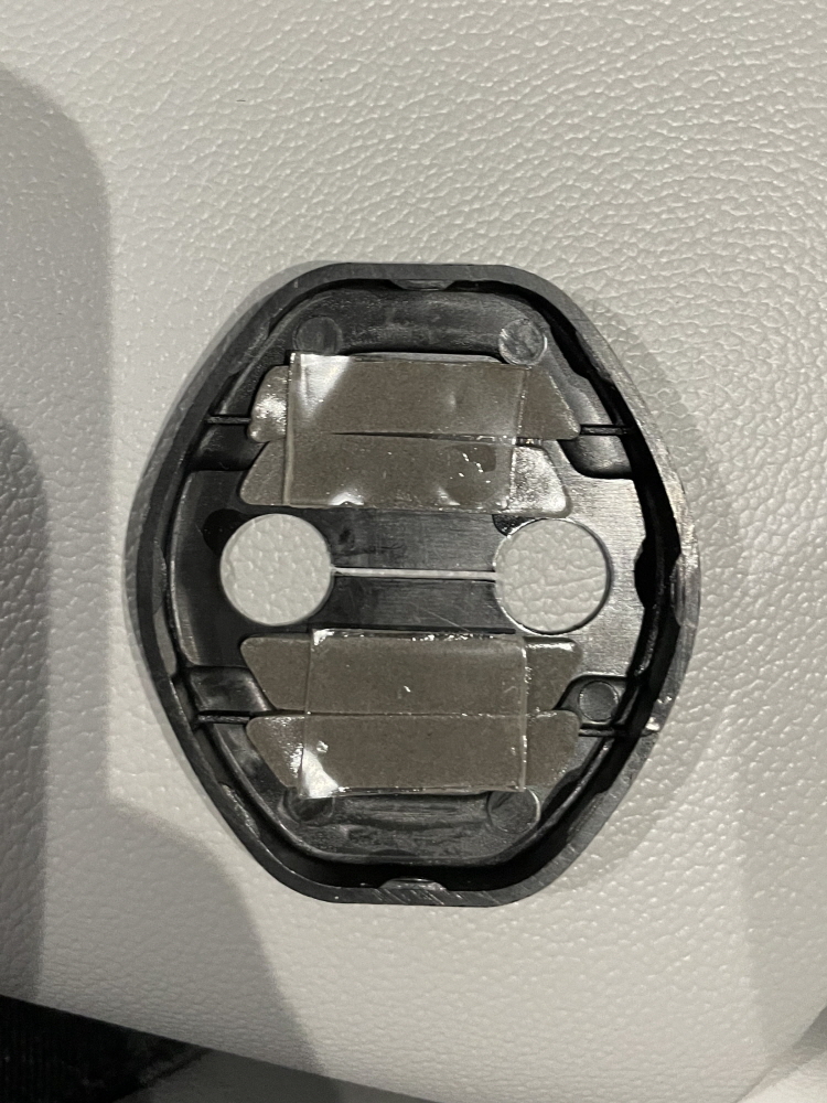앙면테이프를 도어스트라이커 한 조각에 4개씩 붙이라는 건데? 일단 위아래로 붙이고 차량에 붙여 보았다.