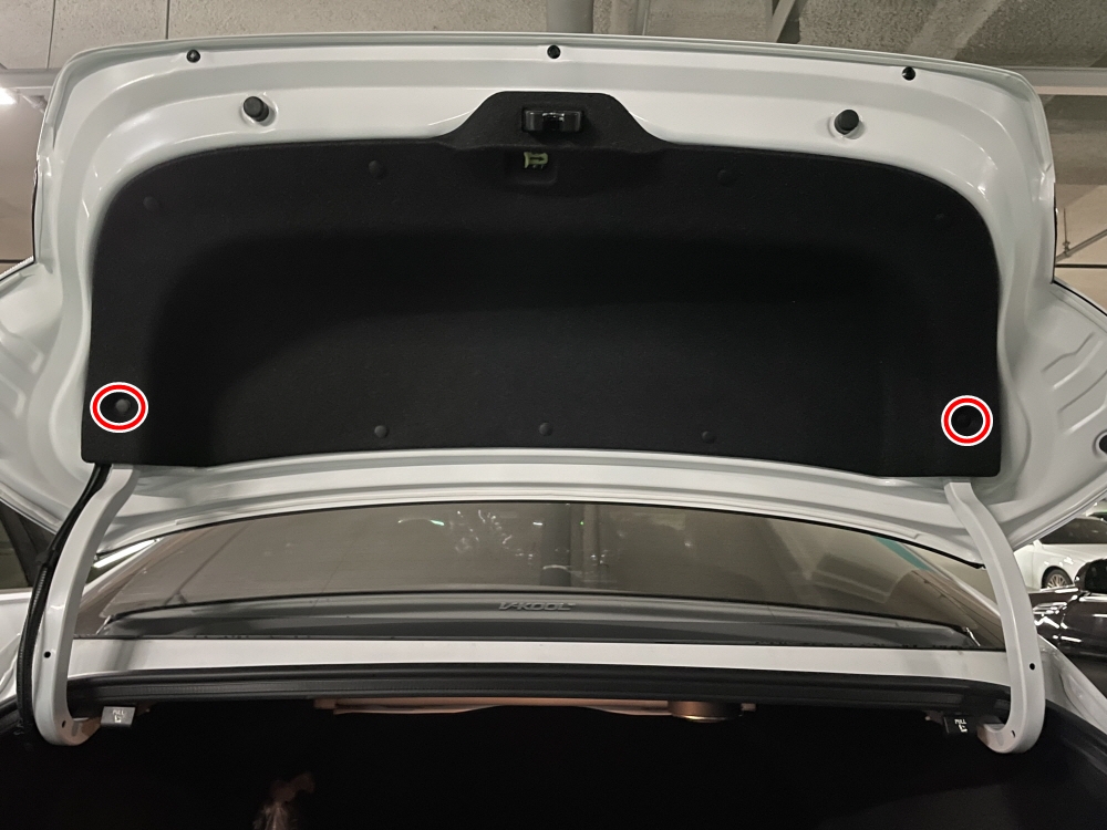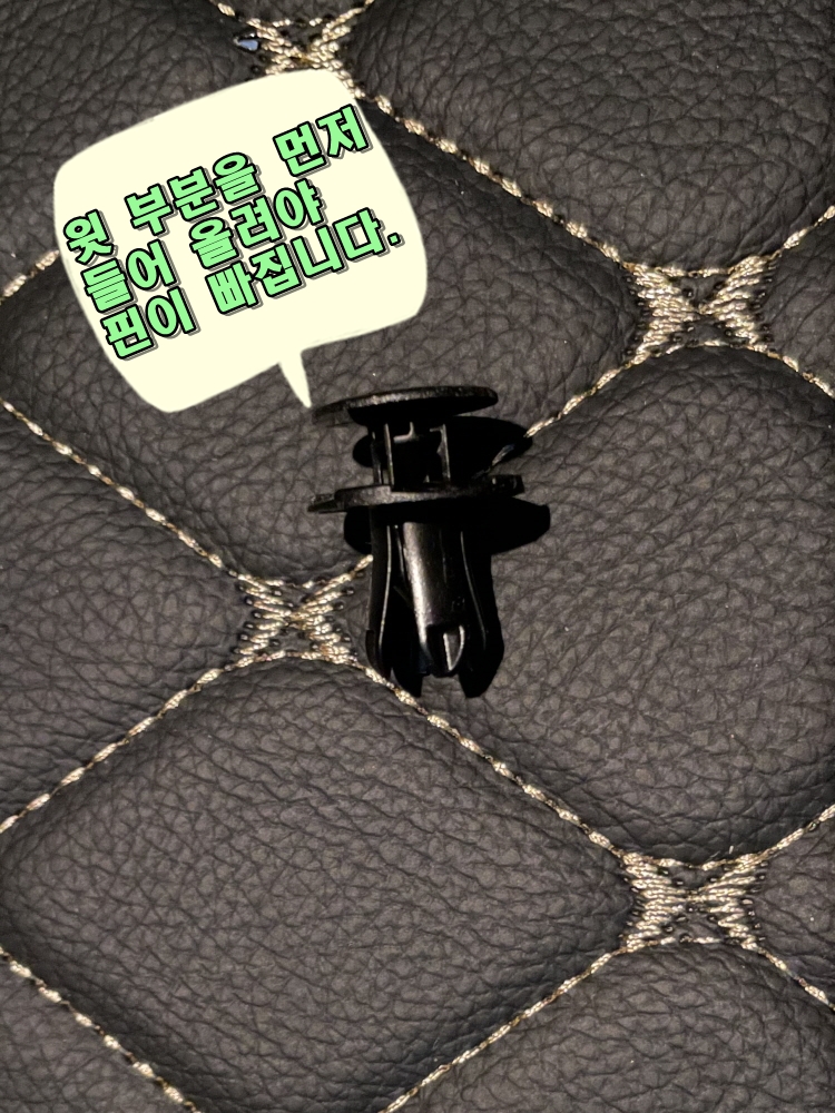 트렁크 도어에는 부직포로 된 부분을 도어에 고정해 주는 플라스틱 고정핀이 있다.