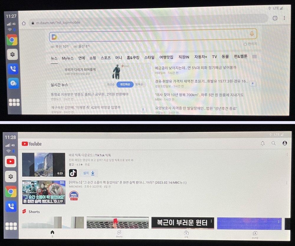 11. 유튜브(좌), 아틀란 네비(우) 분할 실행 화면