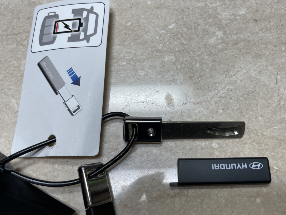 스마트키 방전이 되었을 때 사용할 수 있는 보조키이다. 이 키를 스마트키에 걸고 다니거나 휴대해야 한다는 건데 글쎄..